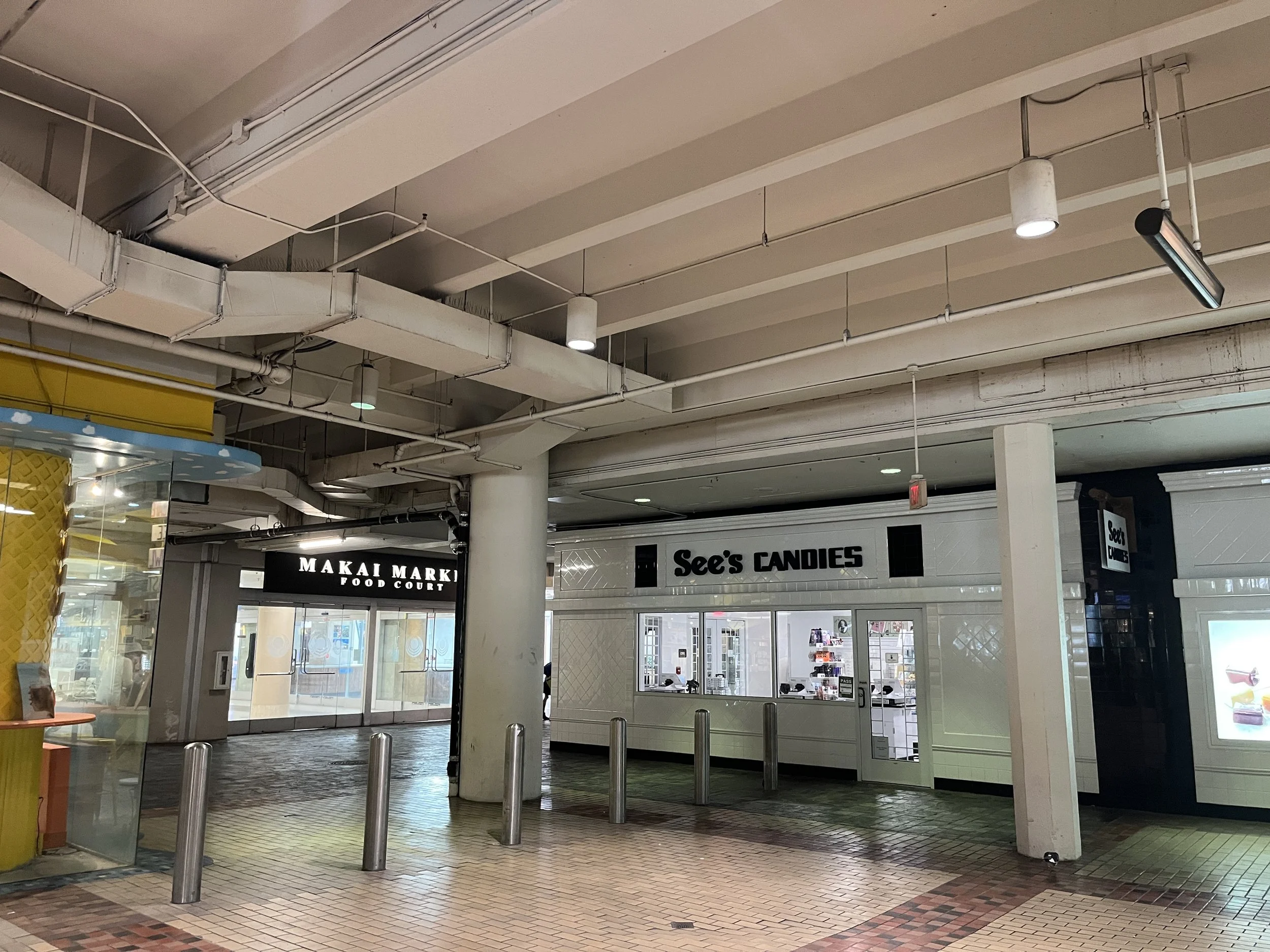 アラモアナセンター内、マカイ・マーケット・フードコート近く、See’s Candies と Jejubing Dessert Cafe の隣