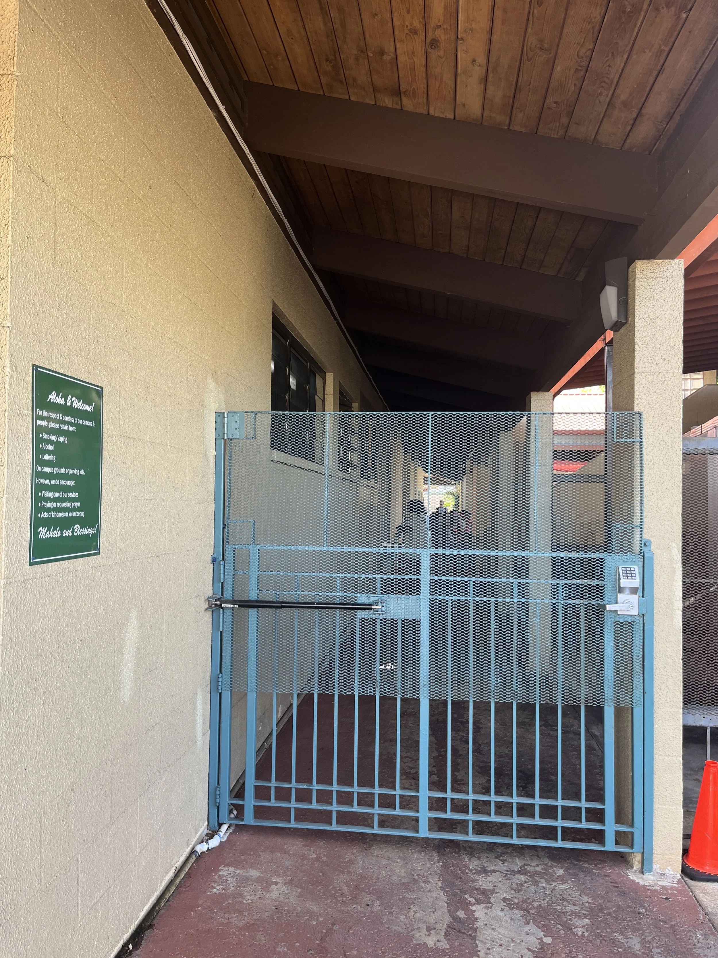 駐車場:教会前の無料駐車場をご利用いただけます。ファーストハワイアンバンク隣の教会の駐車場にお越しいただき、奥にお進みください。奥のゲート(3枚目写真参考)の前でおこさまの引き渡しとなりますので、時間厳守でお願いします。